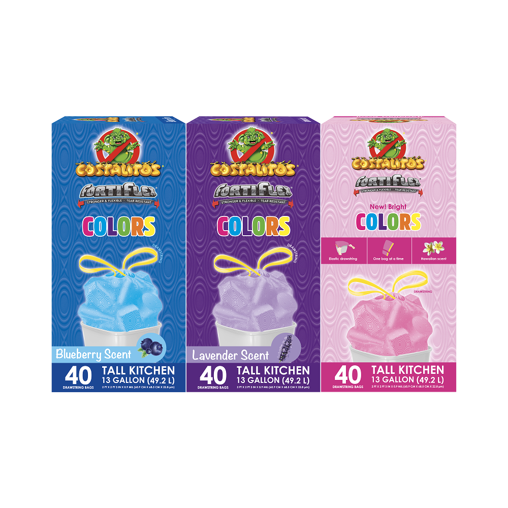 New line of trash bags with a wide range of colors, scents and sizes.